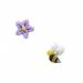 We stitched this 77w x 77h stitch count design on 18ct Anne Cloth. It is shown on its own as the first square of a 1 x 6 banner with a pair of 6" Stoney French Curl fabric holders used for display Threads used are Creeks Colours 105 Flamingo (DMC sub 3716), 401 Lily Pad (DMC sub 3364), 702 Coco Loco (DMC sub 3031); Rainbow Blending Threads 000 Bright White, 403 Iridescent Pastel Yellow, 609 Iridescent Pale Pink, 611 Iridescent Pink; and DMC colors B5200, 310, 341, 435, 436, 437, 471, 498, 640, 642, 644, 738, 743, 744, 745, 772, 783, 814, 963, 3031, 3345, 3346, 3347, 3348, 3747, 3806, 3823 and 3831. The design is embellished with two small fuchisia glitter flower head buttons.